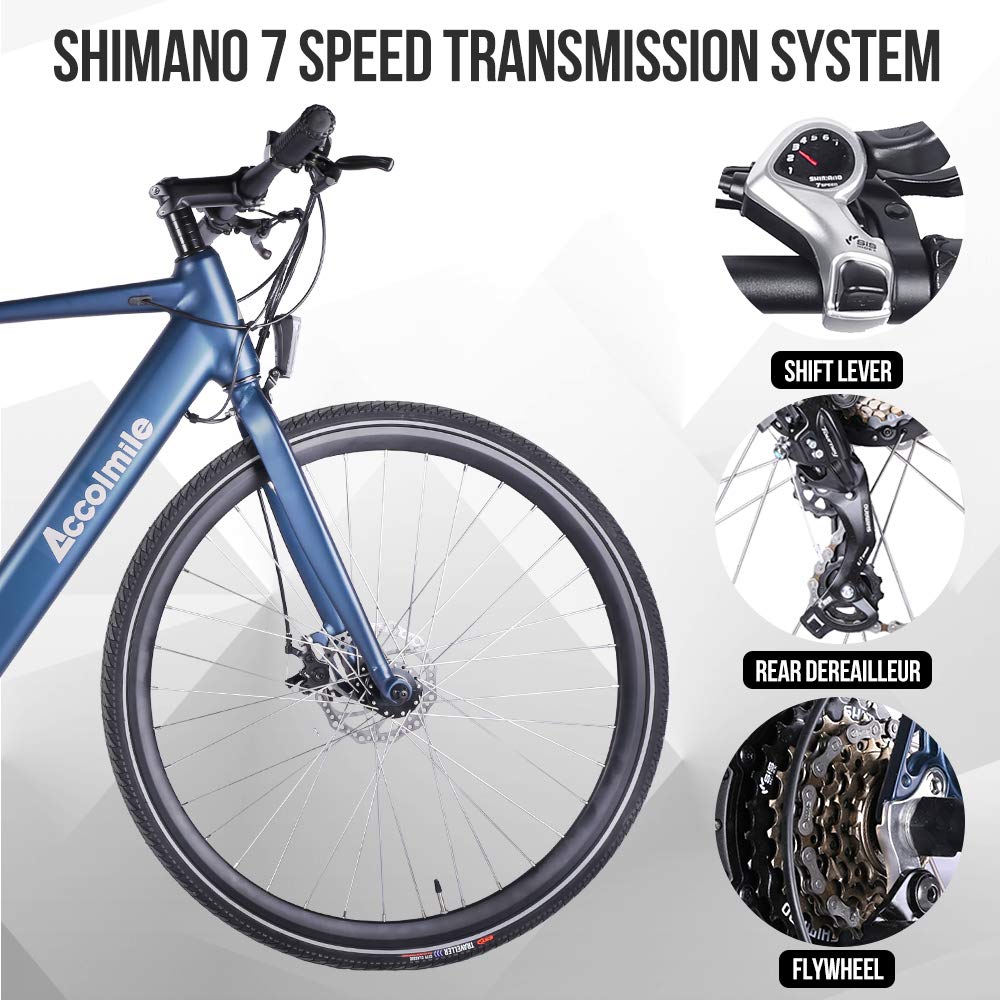Accolmile Rower Elektryczny Urban City Ebike z 700C Lekki elektryczny Rower Dojeżdżający do Pracy dla Dorosłych, Silnik Piasty Tylnej BAFANG 36V 250W z Akumulatorem Litowym 10,5 Ah, 7 Biegowa Shimano