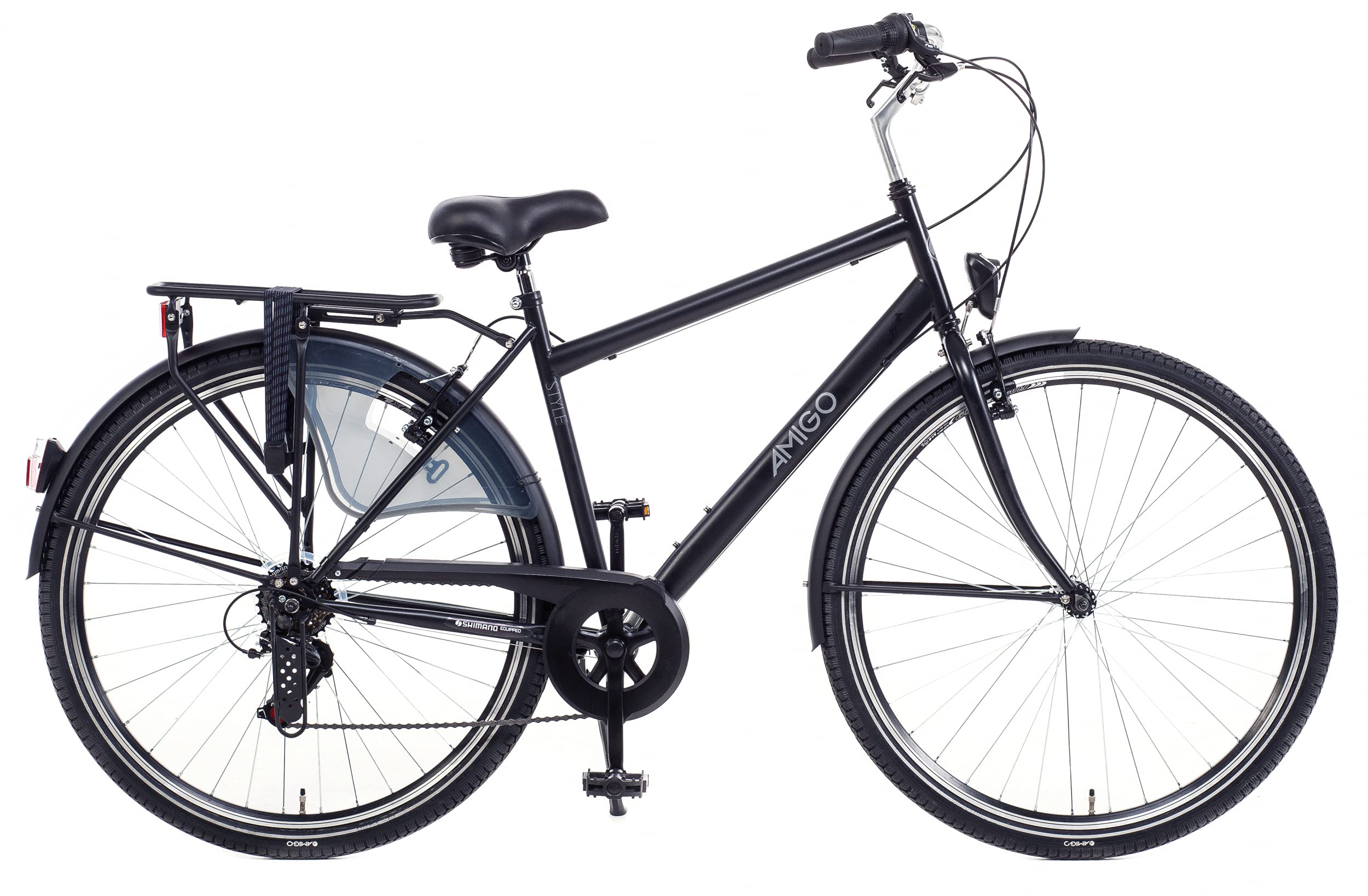 Amigo Styl – rowery miejskie dla mężczyzn – rower męski 28 cali – nadaje się dla dzieci od 180 – 185 cm – 6-biegowa przerzutka Shimano – rower miejski z hamulcem ręcznym, oświetleniem i stojakiem na rower – czarny/szary