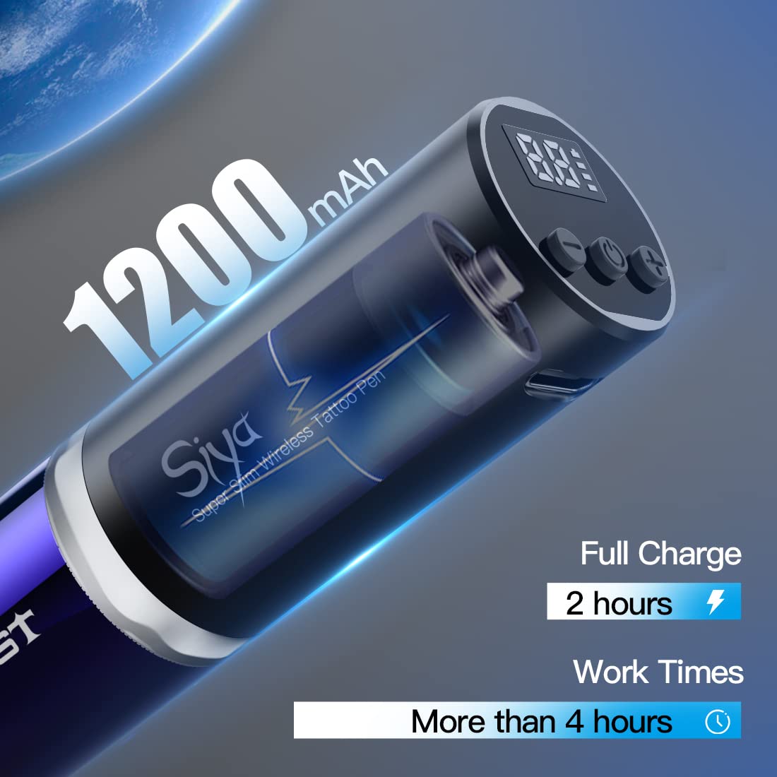 - O baterii: pojemność baterii wynosi 1200 mAh, może obsługiwać długotrwałą pracę z tatuażem, stabilna moc wyjściowa. Może pracować dłużej niż 4 godziny, do pełnego naładowania potrzeba tylko 2 godzin.