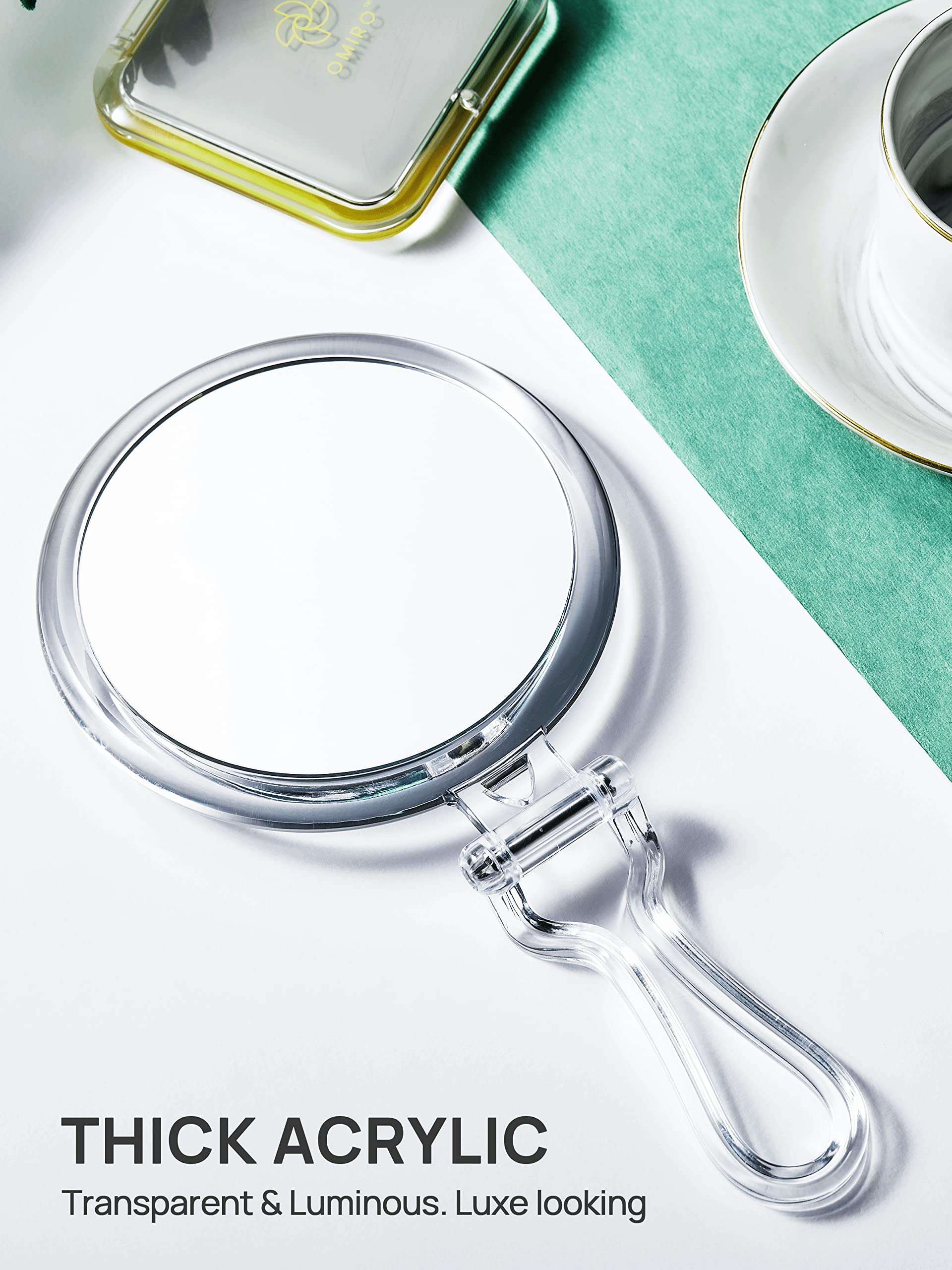 OMIRO Lusterko ręczne, dwustronne, 1X/20x, powiększające, składane lusterko do makijażu, do użytku ręcznego, stołu i w podróży