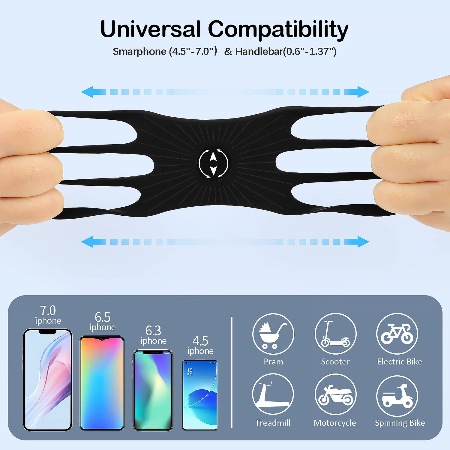 - 【Uchwyt na telefon rowerowy】Uchwyt na smartfon jest dość wytrzymały, a mimo to można go schować do każdej torby, ponieważ jest wykonany z silikonu, bardzo lekki i bardzo stabilny. Przyjazny design silikonowy uchwyt na smartfon jest bardzo elastyczny, pasuje do wszystkich smartfonów o przekątnej ekranu od 4,5" do 7,0". Praktyczny na gorącą porę roku.