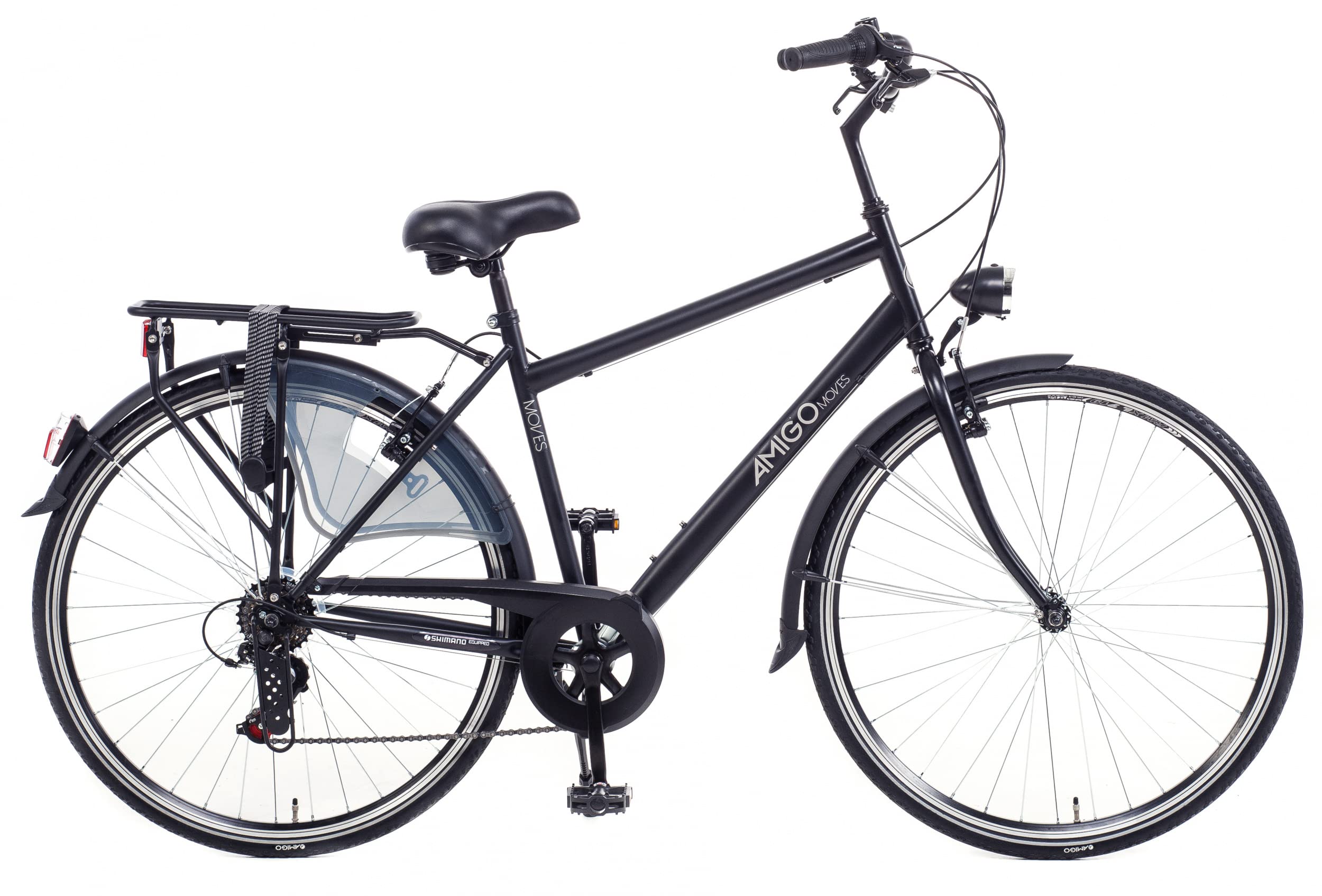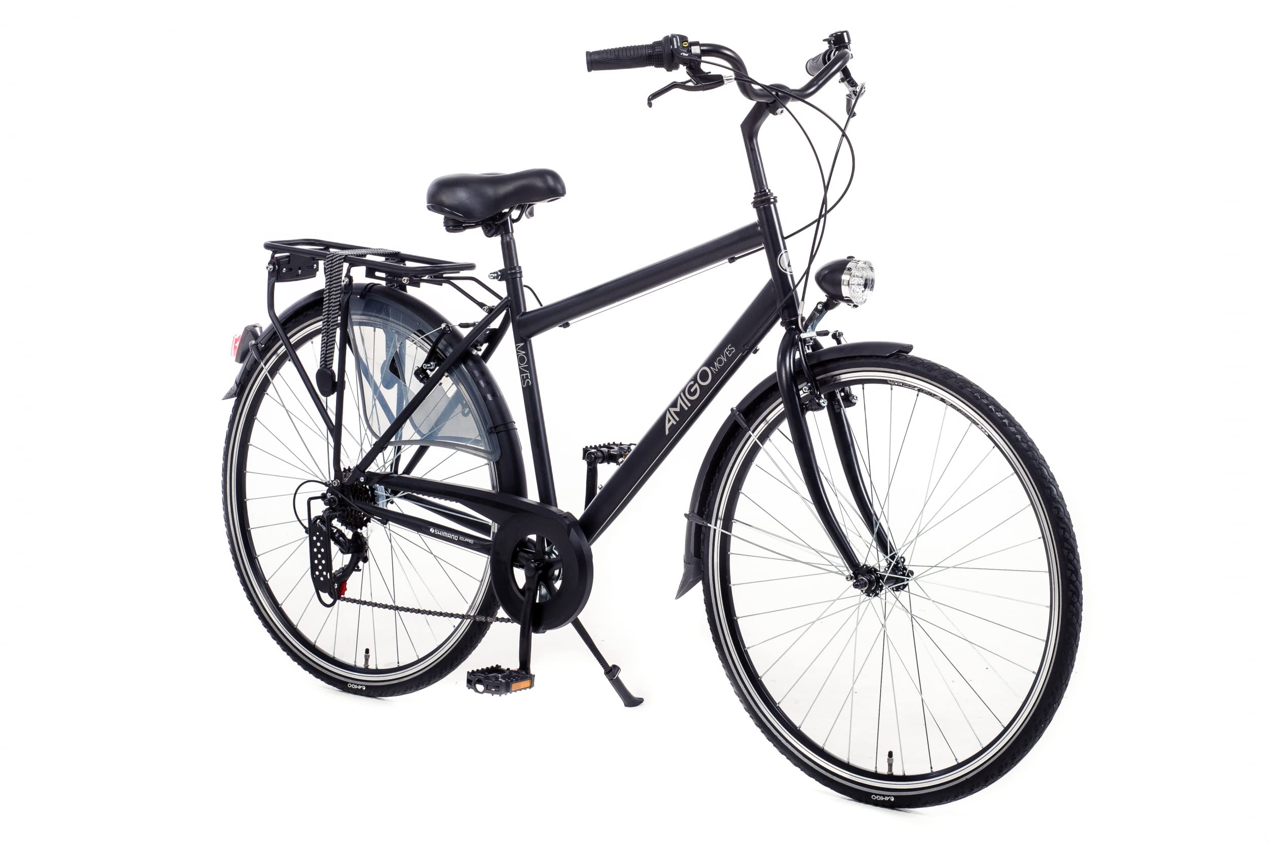 Amigo Moves rower miejski dla mężczyzn, 28 cali, odpowiedni do 170 – 175 cm, 6-biegowa przerzutka Shimano, rower miejski z hamulcem ręcznym, dzwonkiem, stojakiem i światłem, czarny