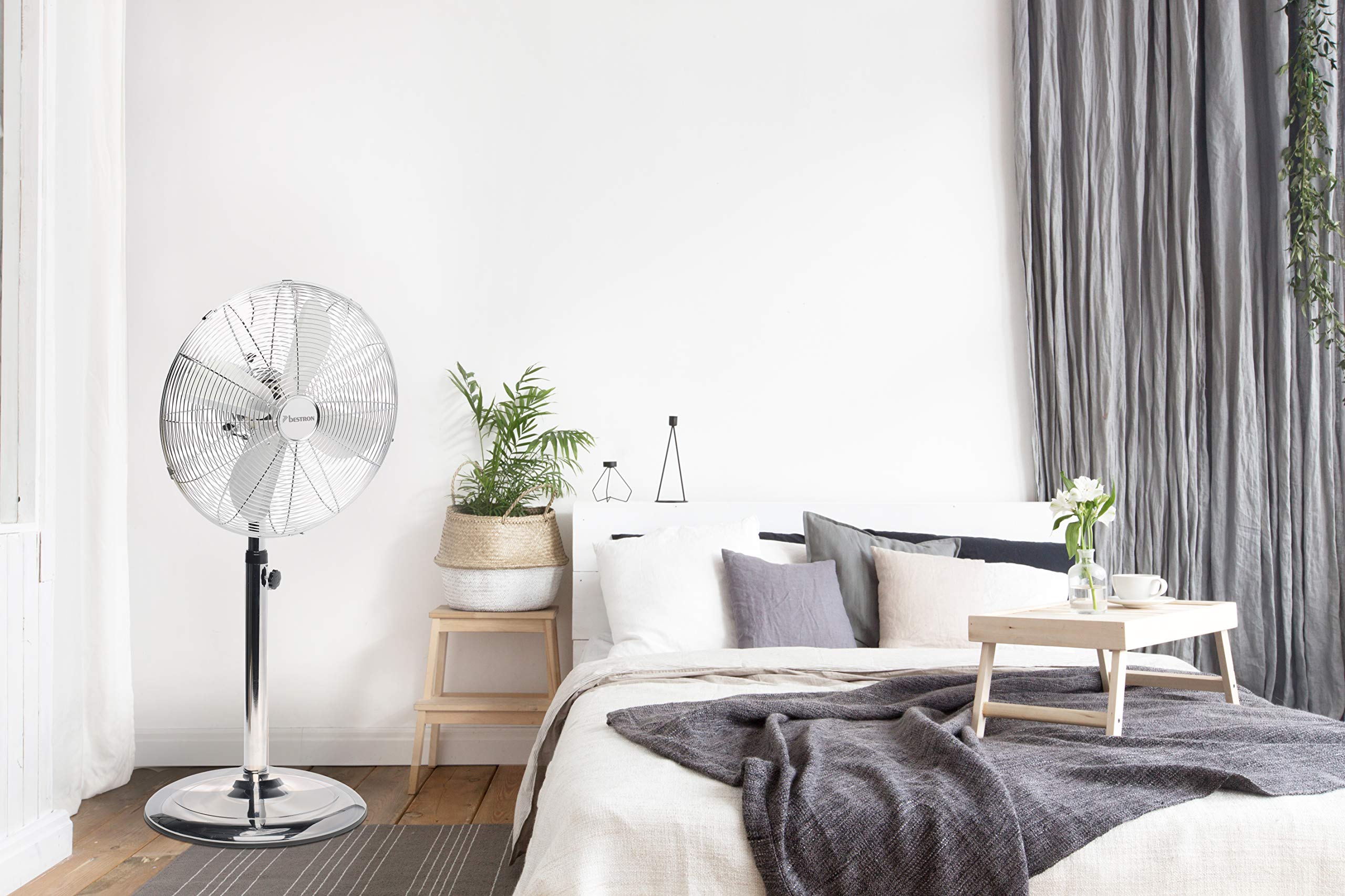- Zakres dostawy: 1 wentylator stojący Bestron, moc: 50 W, średnica/kratka ochronna: 45 cm, wysokość: 127 cm, materiał: tworzywo sztuczne/metal, kolor: chrom, DFS45S