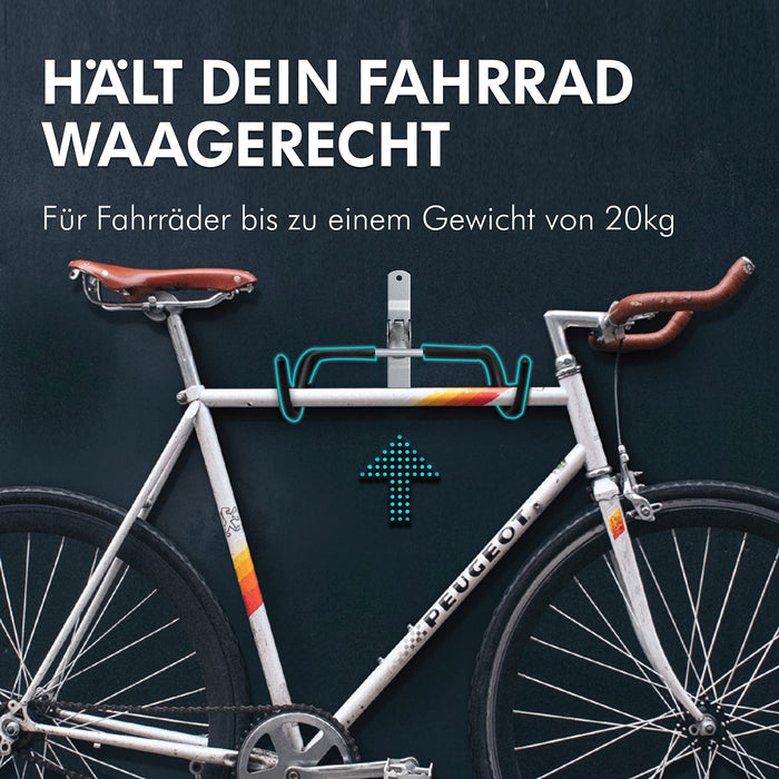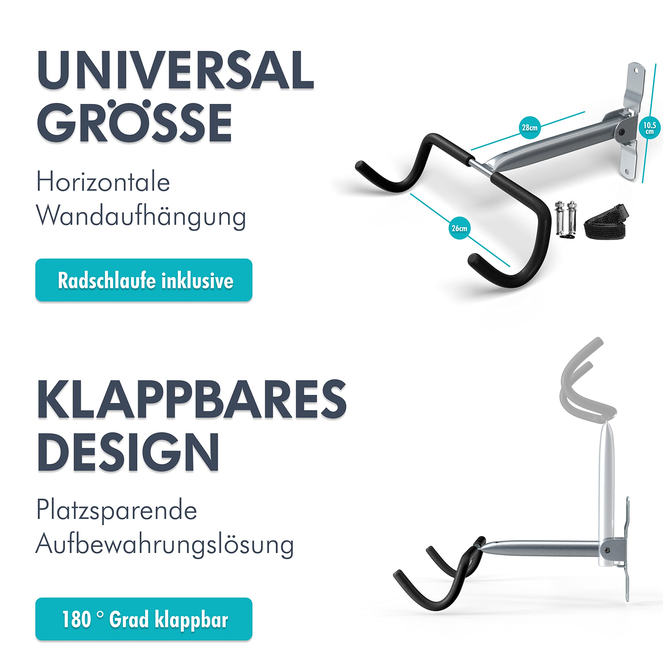 Charles Daily Montowany na ścianie bagażnik rowerowy, składany uchwyt ścienny do przechowywania roweru i oszczędzania miejsca, wieszak rowerowy z wyściełaną pianką ochroną ramy - Core Grey