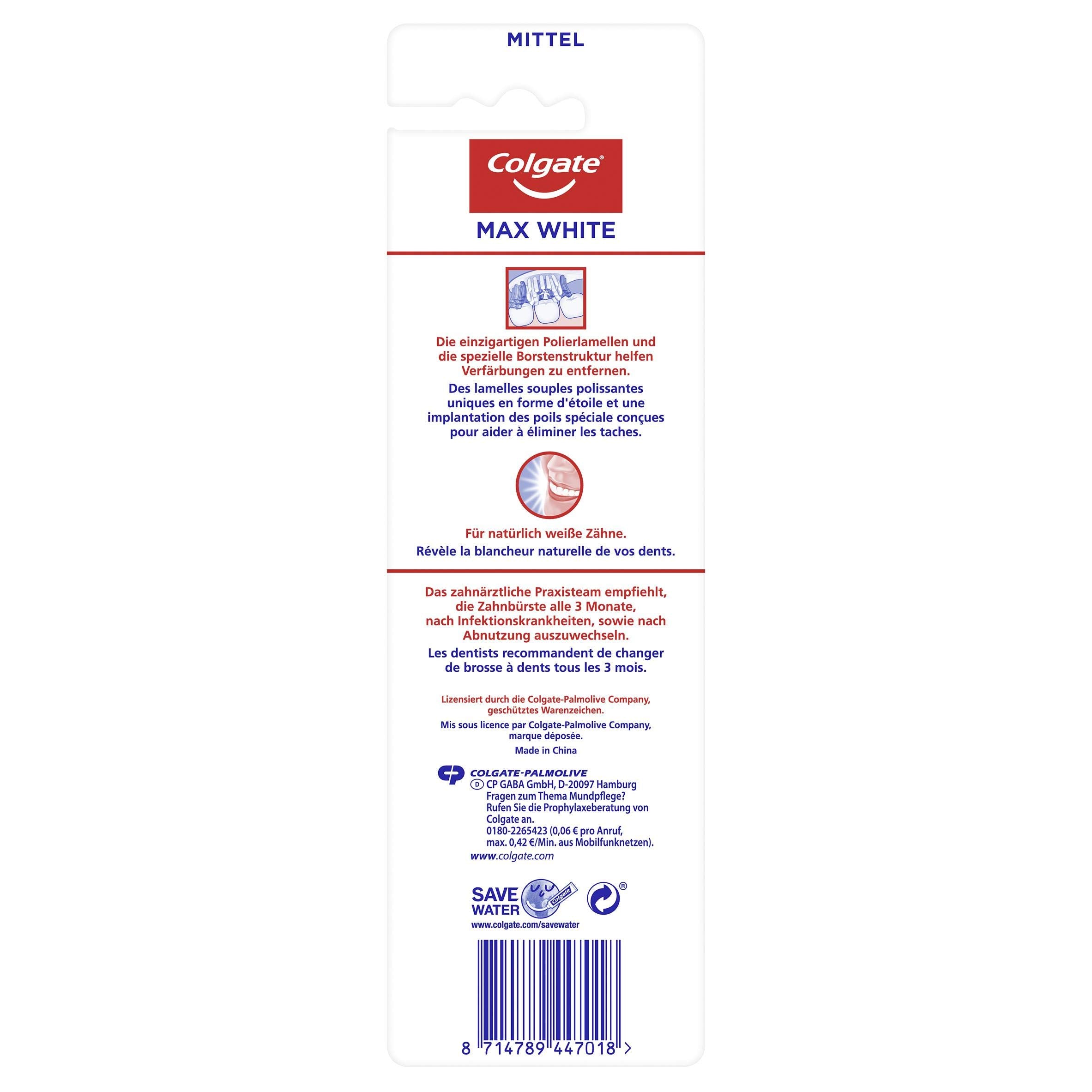 - Do naturalnie białych zębów – Colgate Max biała szczoteczka do zębów z średnio twardym włosiem