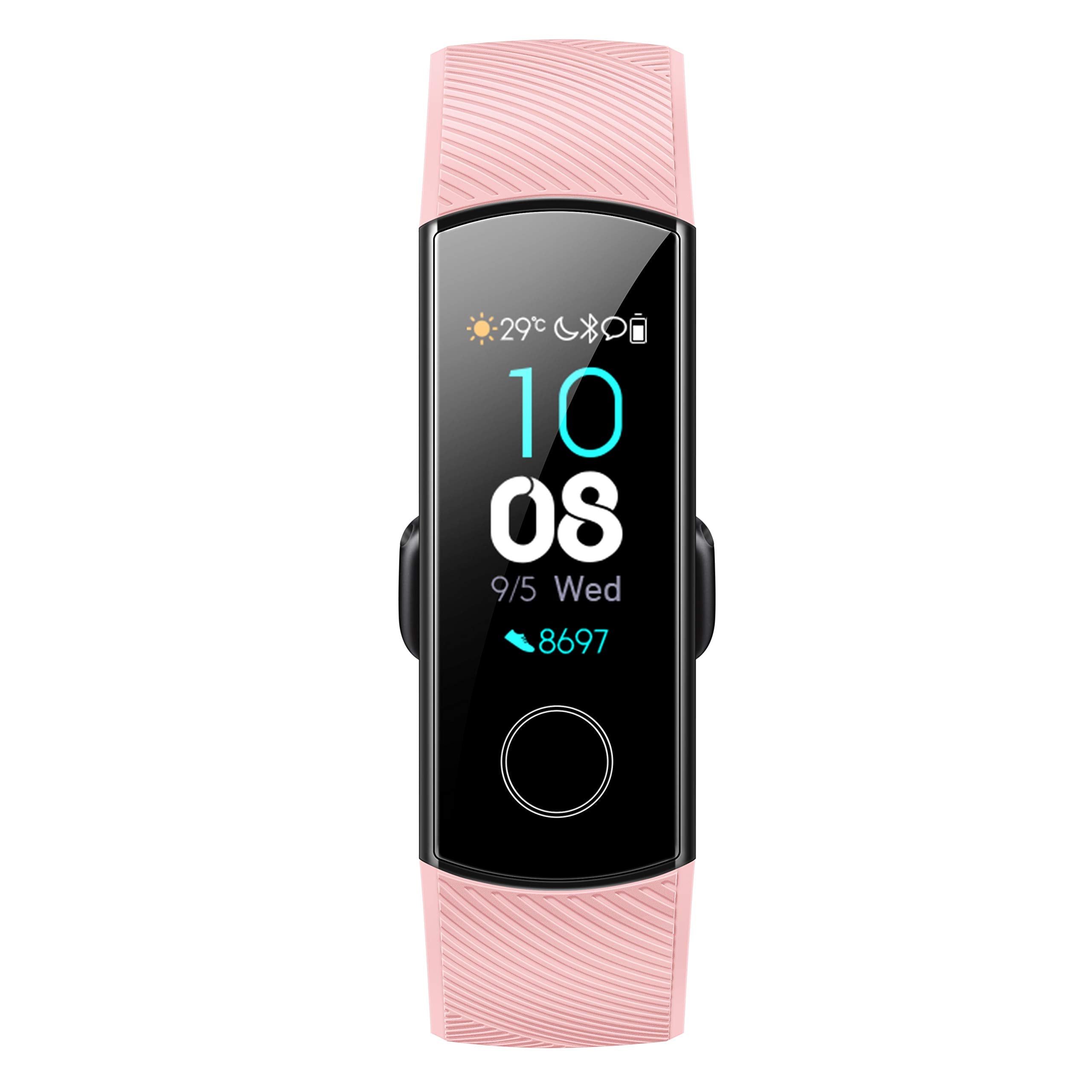 Honor Band 5 bransoletka fitness z pulsometrem, krokomierzem, monitorem zawartości tlenu we krwi, kolorowym wyświetlaczem AMOLED, ekranem dotykowym, wiadomościami, różowa.