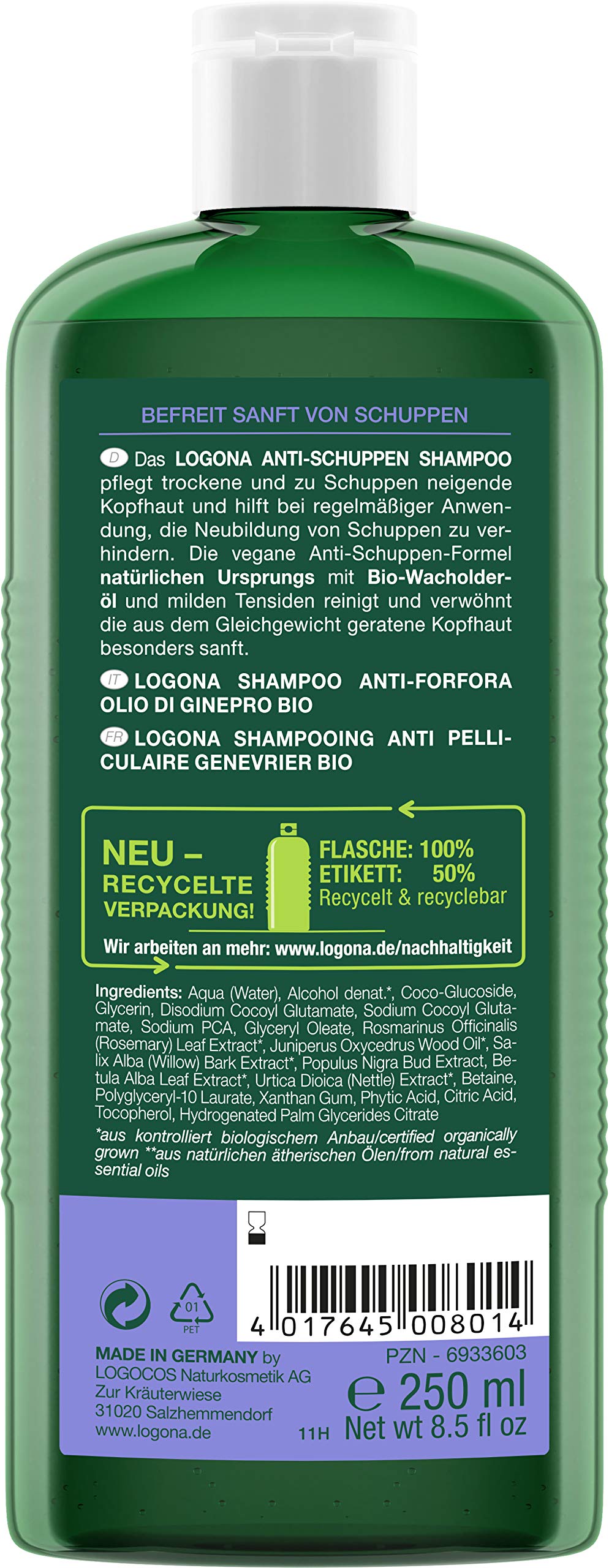 Logona Naturkosmetik Szampon Przeciwłupieżowy Organiczny Olejek Jałowca, 250 ml