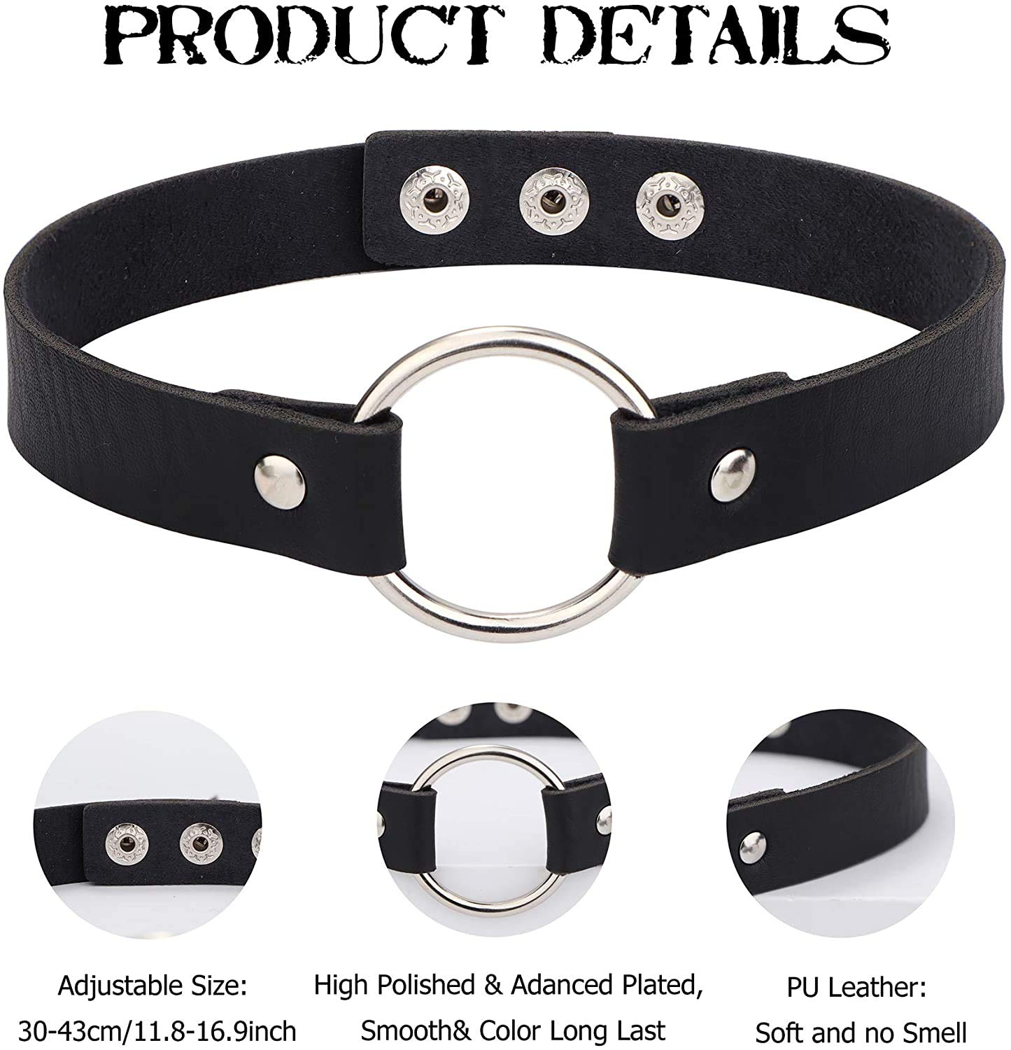 - ✯ Idealny rozmiar do noszenia ✯ Dzięki regulowanemu wzornictwu pasuje do większości ludzi i jest przyjemny w noszeniu. Wszystkie obroże z kołnierzykiem w stylu gotyckim i zatrzaskami. Całkowita długość paska: 30-43 cm / 11,8-16,9". Zatrzaski można regulować w zależności od rozmiaru szyi, od rozmiaru szyi od mniejszego do większego, łatwe do noszenia i zdejmowania