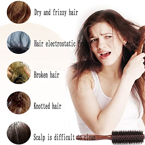 MMSSY Szczotka do suszarek do włosów,lokówka z okrągłą do z włosiem dzika masaż głowy pielęgnacja, do suszenia drewnianą beczką stylizacji prostowanie, loki
