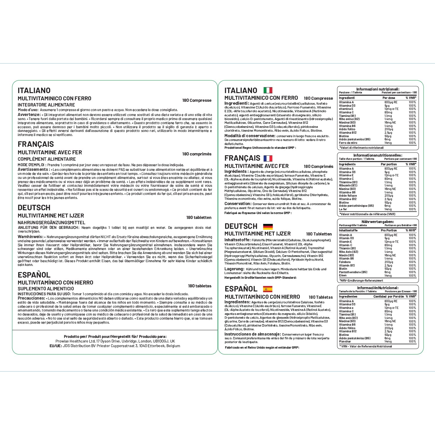 - 👉 Prowise Multivits & Iron zawiera wszystkie niezbędne codziennie witaminy A, witamina C, witamina E, witamina D3, witamina B1, witamina B2, witamina B3, witamina B5, witamina B6, witamina B12, witamina B9, biotyna i żelazo.
