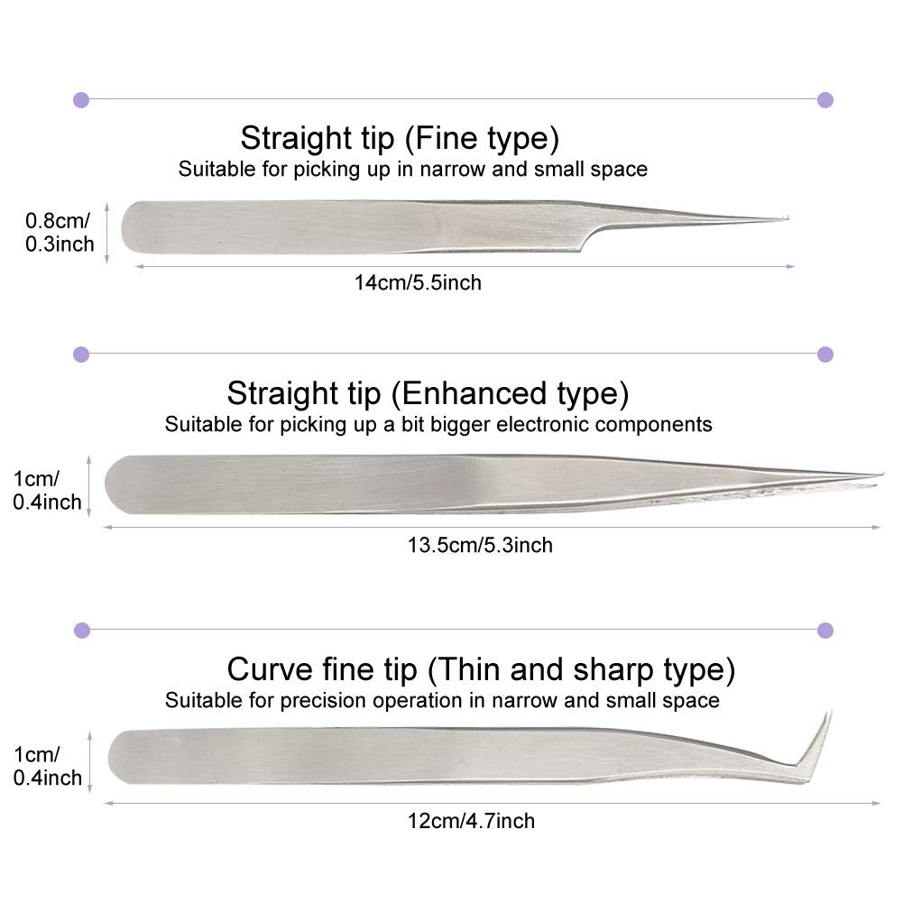 - Cztery rodzaje pęsety o różnym przeznaczeniu.