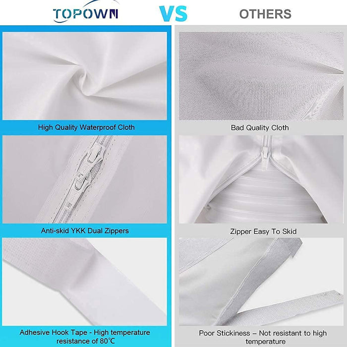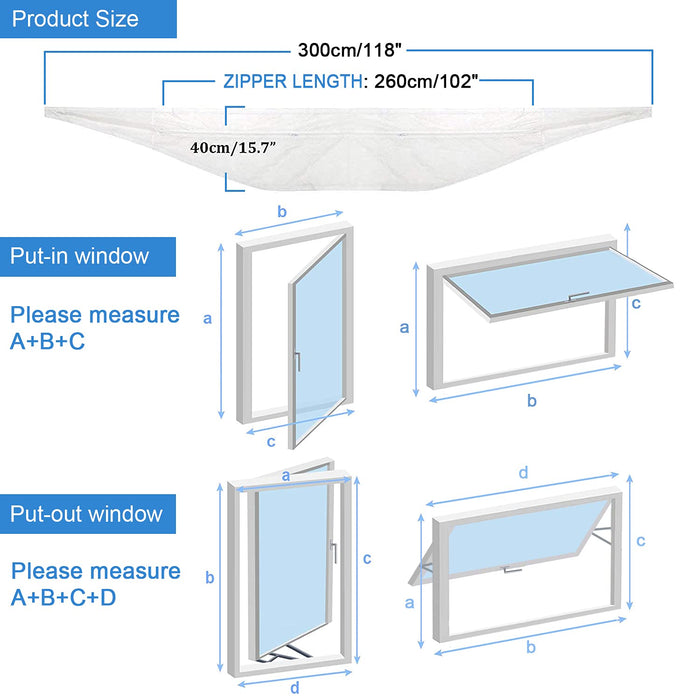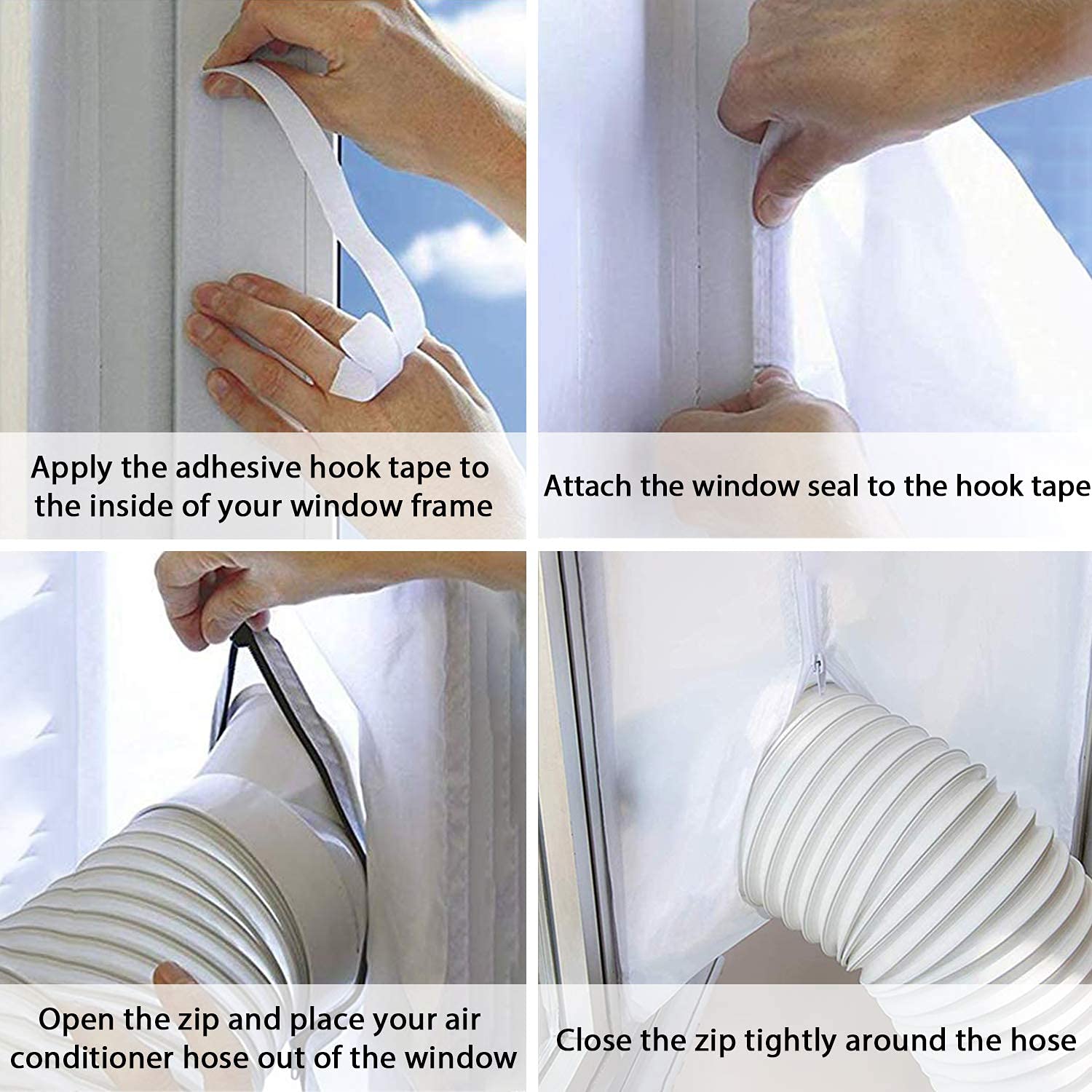 - Łatwy montaż – uszczelnienie okien marki TOPOWN jest łatwe w montażu i nie wymaga bez wiercenia. Najpierw należy zmierzyć cztery strony okna a następnie kupić uszczelnienie, większe niż obwód ramy okiennej. Najpierw naklej taśmę klejącą na ramę i okno, a następnie naklej na taśmę samoprzylepną uszczelkę okienną do klimatyzatorów mobilnych. Następnie otwórz zamek błyskawiczny i przeprowadź przewód klimatyzacyjny przez zamek błyskawiczny i przez okno.