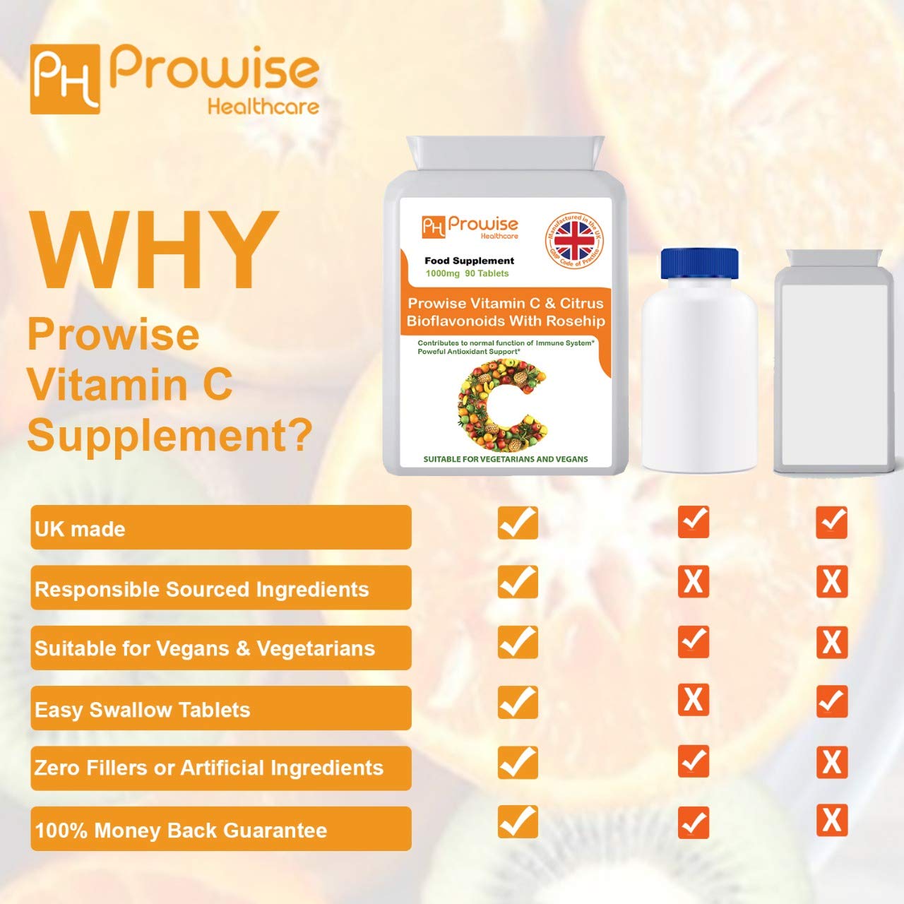 - 👉 Dlaczego witamina C Prowise z bioflawnoidami i dzikiej róży jest lepsza niż inne marki - Prowise witamina C zawiera 1000 mg witaminy C razem z dzikiej róży 25 mg i cytrus bioflawonoid 25 mg, złożoną formułę. Oba dodane składniki sprawiają, że prowise witamina C jest lepsza niż normalna witamina C.