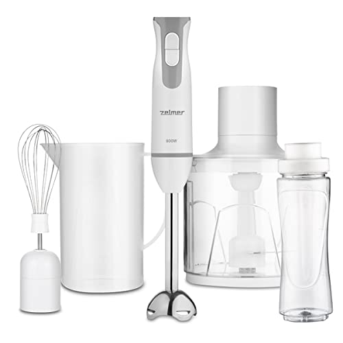 Zelmer Blender ręczny - ZHB4554S blender sportowy, 800W, funkcja TURBO, 2 noże, blender sportowy o pojemności 600 ml, biało-szary.