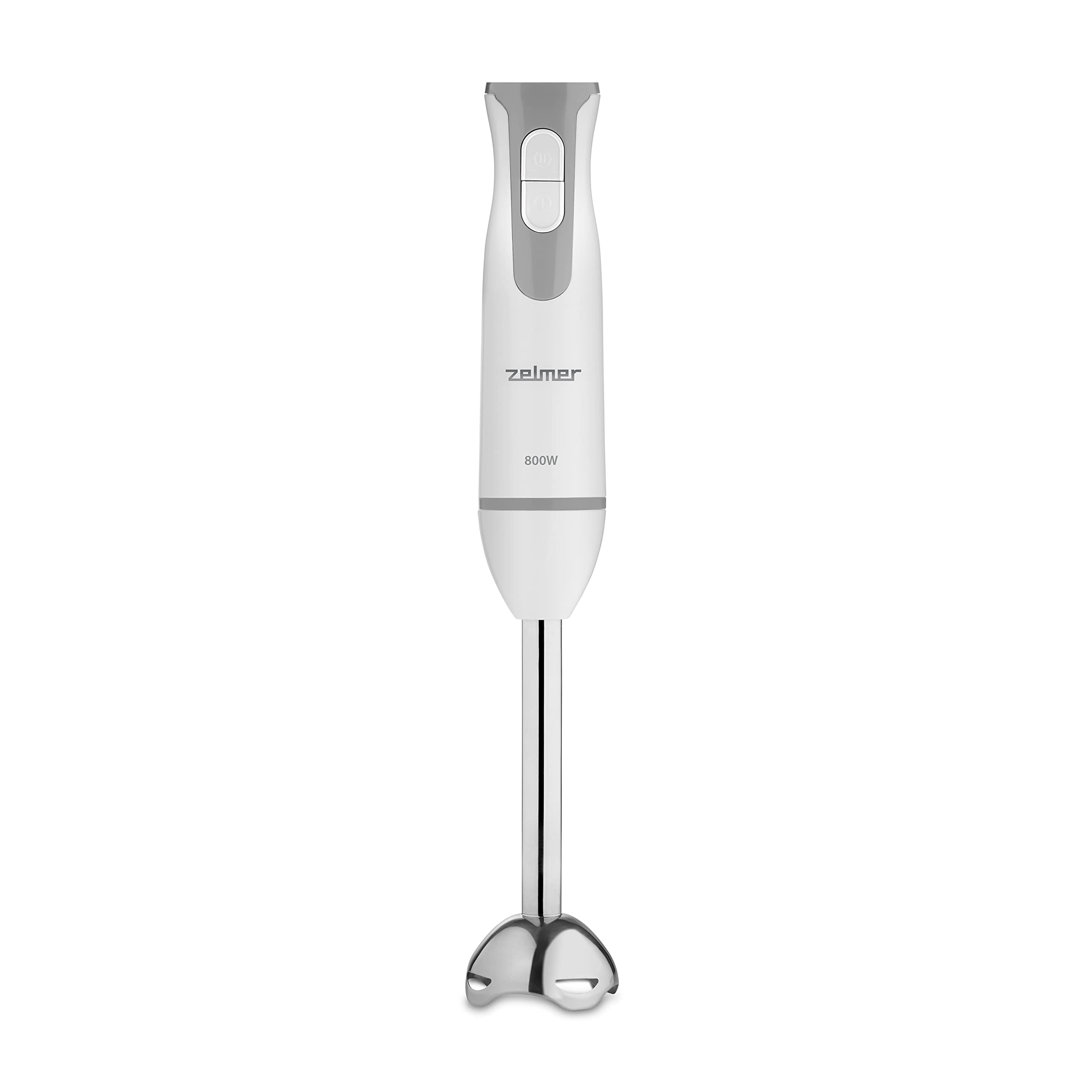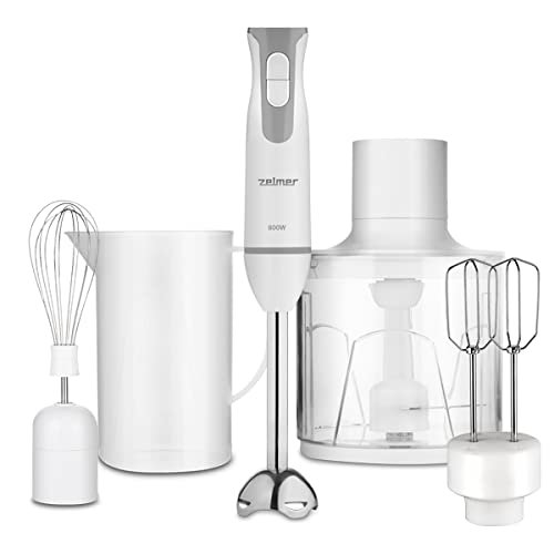 Zelmer ZHB4553S Blender ręczny, 800 W, funkcja Turbo, 2 noże, miarka o pojemności 0,8 L, trzepaczka, siekacz o pojemności 450 ml, mikser, biało-szary.