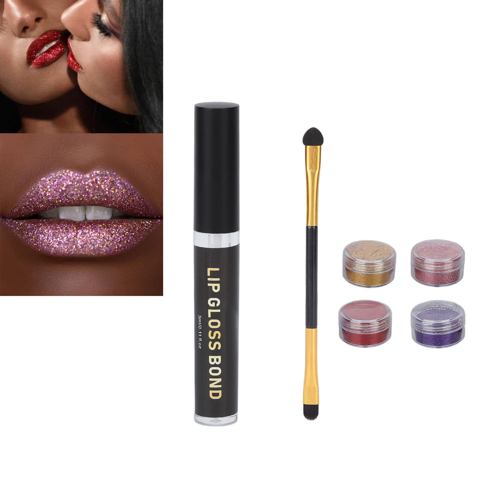 Zestaw brokatowych ust, efekt 3D Długotrwały wodoodporny brokat 4 kolory 4 pędzle Zestaw 3 ml podkładu z błyszczykiem do ukończenia szkoły na imprezę podróżniczą